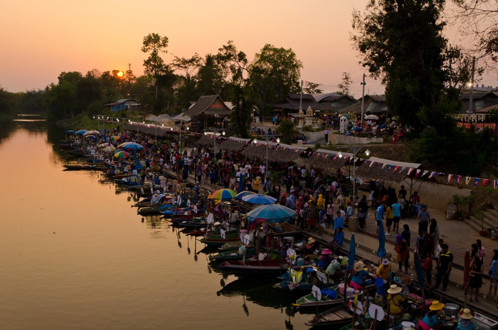 เปิดตลาดในวันศุกร์ เสาร์ อาทิตย์ ตั้งแต่เวลาประมาณ 16.00 – 20.00 น. สามารถซื้อหาของฝากกลับบ้านหรือจะนั่งรับประทานที่ตลาดน้ำตามสะดวก โดยทางตลาดน้ำได้รณรงค์ให้ใช้ภาชนะใส่อาหารจำพวก กะลา กระบอกไม่ใผ่ หม้อดินเผา ที่ไม่เป็นพิษภัยต่อสิ่งแวดล้อม