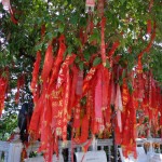 ความเชื่อเมื่อมาไหว้องค์พระพรหม การ ผูกผ้ายันต์สีแดงบนต้นไม้และรูปปั้นช้างที่บนเขาสวนสาธารณะหาดใหญ่จะเห็นได้ มากในสถานที่ที่มีสิ่งศักดิ์สิทธิ์ ที่เห็นรอบๆ ศาลท้าวมหาพรหมแห่งนี้ และวิหารพระแม่กวนอิมอีกแห่งหนึ่งที่จะเห็นยันต์สีแดงเหล่านี้อยู่เต็มไปหมด