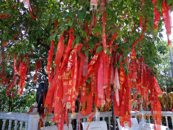 ความเชื่อเมื่อมาไหว้องค์พระพรหม การ ผูกผ้ายันต์สีแดงบนต้นไม้และรูปปั้นช้างที่บนเขาสวนสาธารณะหาดใหญ่จะเห็นได้ มากในสถานที่ที่มีสิ่งศักดิ์สิทธิ์ ที่เห็นรอบๆ ศาลท้าวมหาพรหมแห่งนี้ และวิหารพระแม่กวนอิมอีกแห่งหนึ่งที่จะเห็นยันต์สีแดงเหล่านี้อยู่เต็มไปหมด